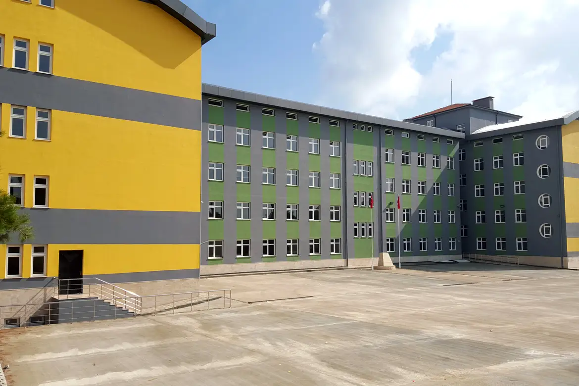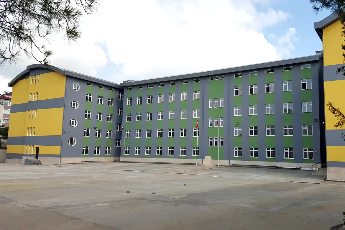 MİMARİ ÖZELLİKLERİ : 32 derslik ve 1000 öğrenci kapasiteli olup, bodrum katta kantin ve spor salonu, çatı katında 200 kişilik çok amaçlı salon, kütüphane, bay-bayan mescit katlarda ise derslik ve idari kısımlar bulunmaktadır. Okulun bahçesinde tören alanı, oturma bankları ve pergolalar çevre düzenlemeleri ile birlikte yer almaktadır.