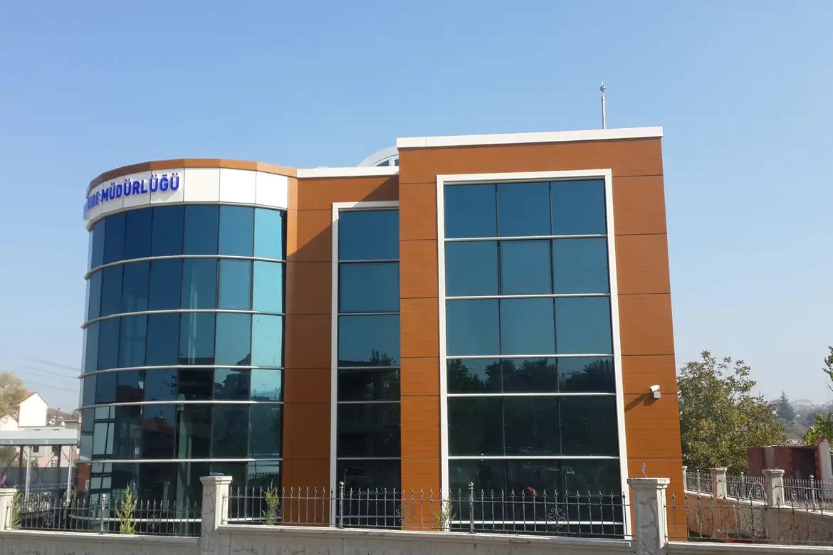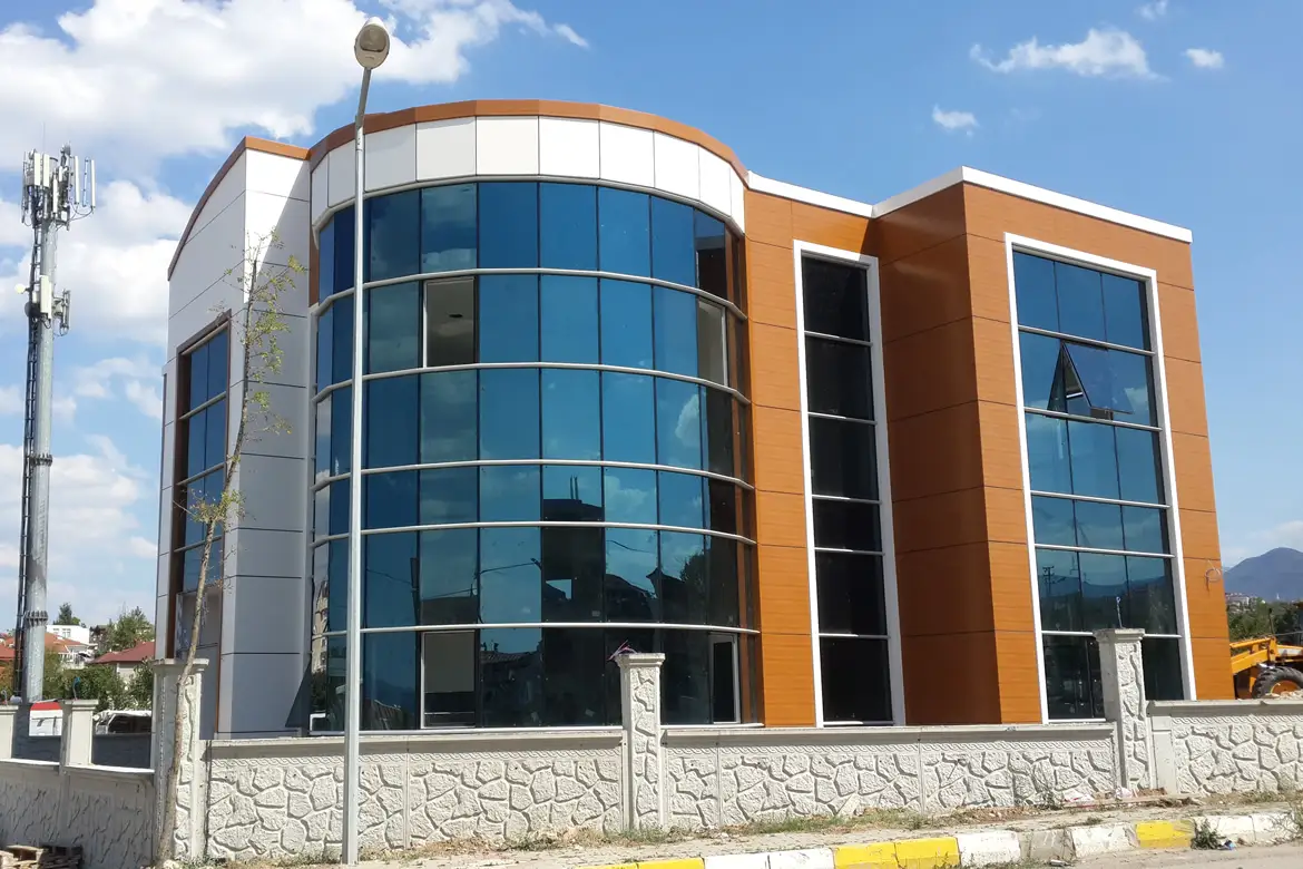 MİMARİ ÖZELLİKLERİ : Dış cephe kaplamaları olarak alüminyum kompozit levha kaplama ve strüktürel silikon giydirme cephe sistemleri kullanılmıştır.