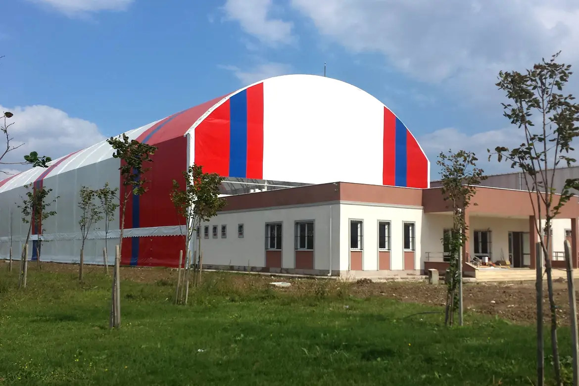 MİMARİ ÖZELLİKLERİ : Tek kat ve iki kısımdan oluşmaktadır. Birinci kısım, idari kısım olarak yapılmış ve içerisinde kantin, bay-bayan duş, soyunma odaları ve idari birimler yer almaktadır. İkinci kısımda ise, uluslar arası standartlara uygun olarak özel kauçuk zemin kaplamalı olarak yapılmış 2000 m² atletizm pisti yer almaktadır.