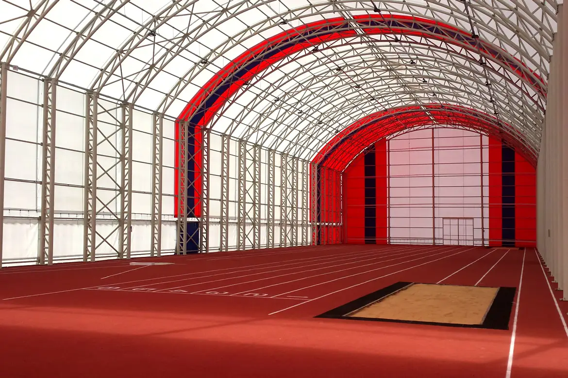 Pist içerisinde gülle atma, çekiç atma, cirit atma, disk fırlatma, uzun atlama, yürüyüş, maraton ve benzeri gibi birçok spor dalı yarışları ve eğitimleri yapılmaktadır.